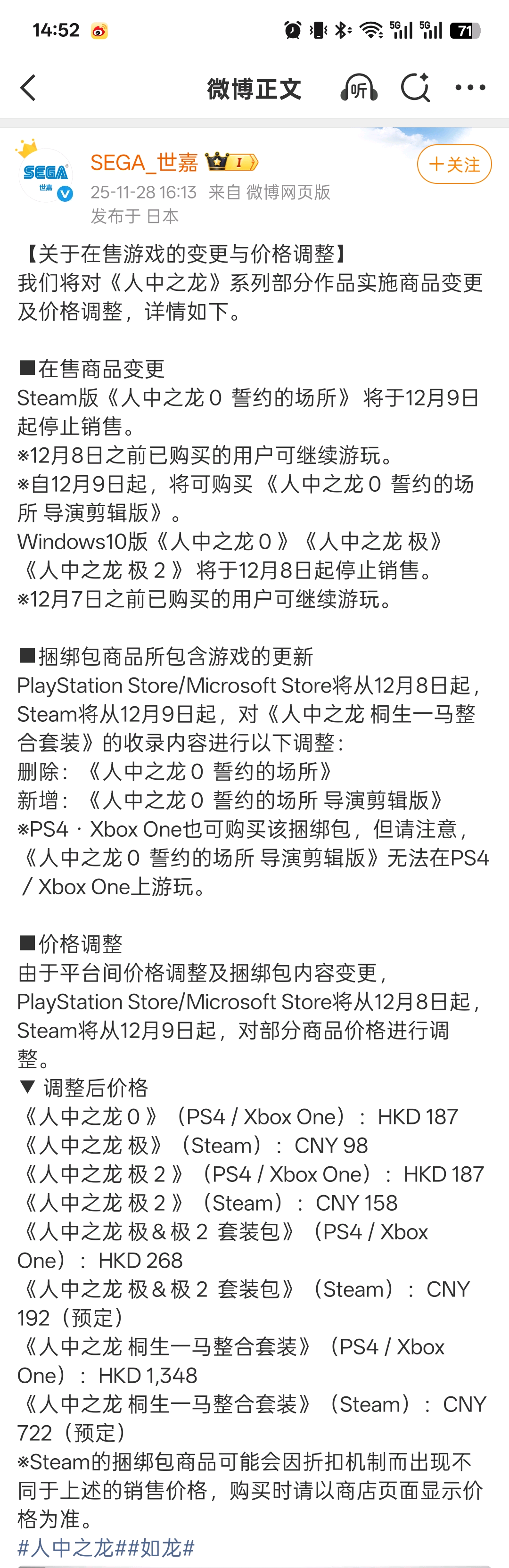 想入坑如龙系列,是玩一部买一部,还是直接买合集 |