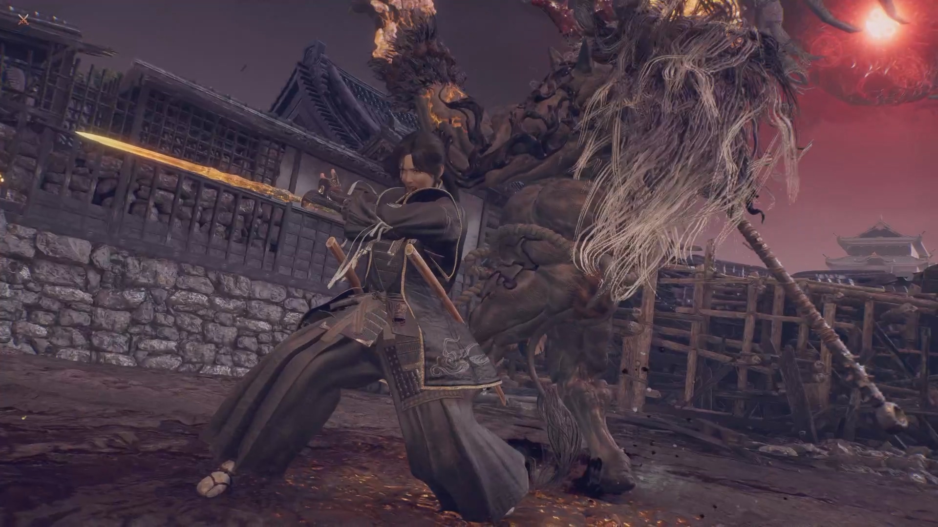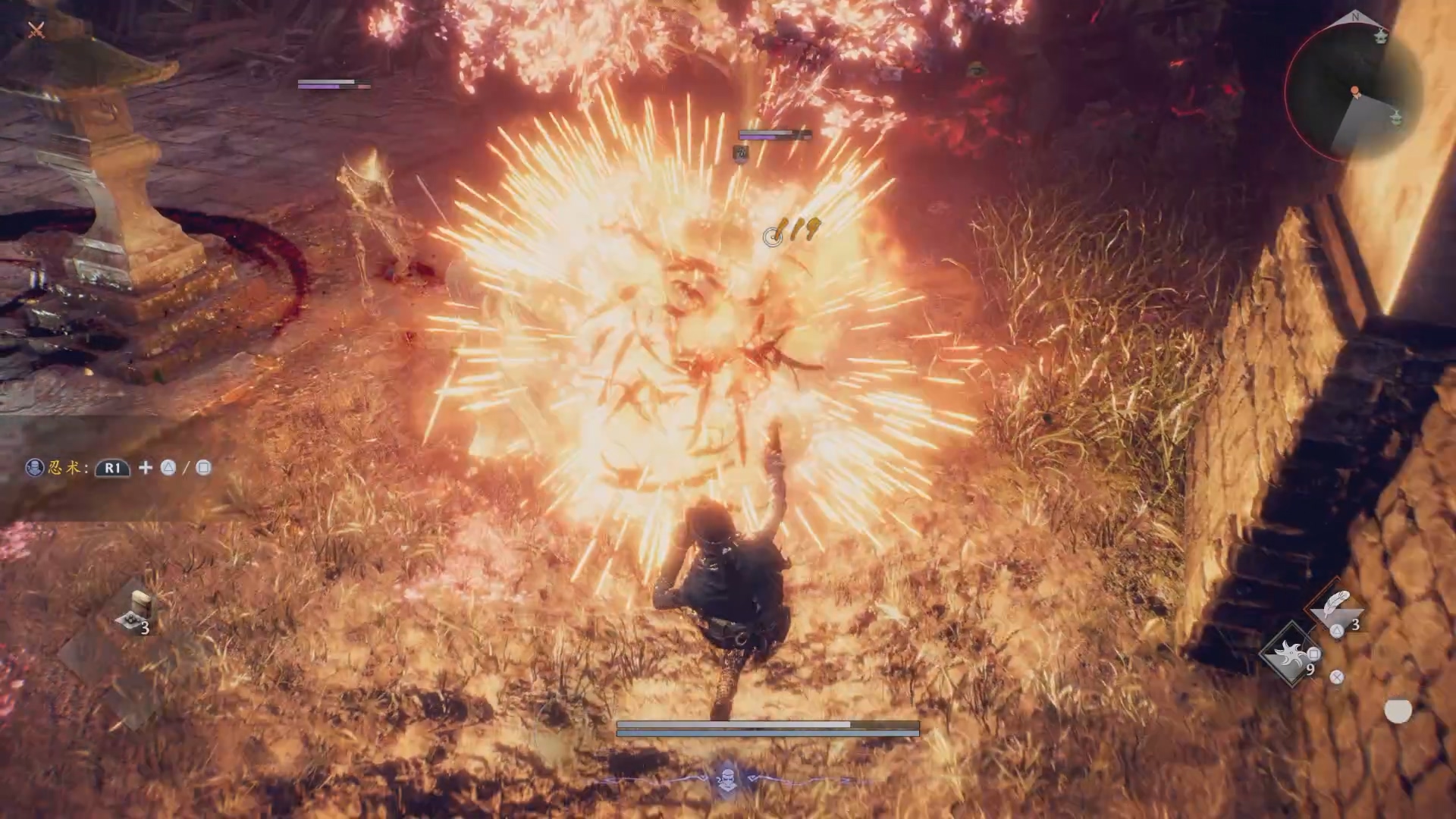 本作的核心进化在于引入了可在战斗中一键无缝切换的“武士”与“忍者”双战斗风格系统。武士风格是系列经典体验的正统进化,注重扎实的攻防博弈与精力管理,新增了能提升武技威力的“琢技”系统,以及能在完美时机格挡敌人攻击、回复精力并积累量表的核心技能“格挡”。 忍者风格则代表了全新的高速动作维度,和Team Ninja的经典作品《忍者龙剑传》系列有几分相似之处。该风格强调超高的机动性与空中动作,使用名为“霞”的技巧可以在攻击后留下分身迅速位移,扰乱敌人;还能灵活运用多种忍术进行远程牵制或快速近身。值得注意的是,使用忍者风格从敌人背后发动攻击可以造成比武士风格更高的伤害。