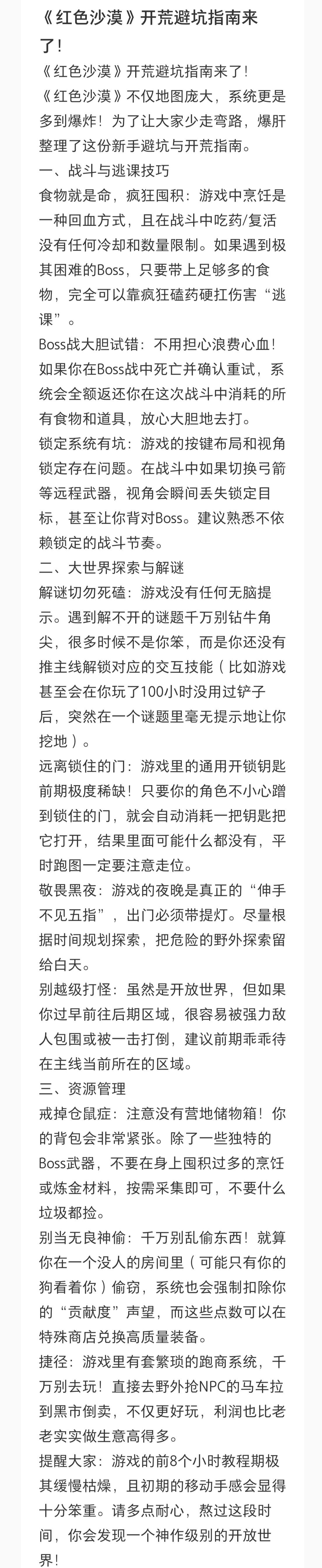 不同先驱们的红色沙漠开荒避坑指南 |